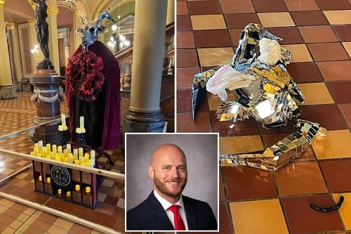 The statue was brought to the Capitol by the Satanic Temple of Iowa under state rules allowing religious displays in the building during the holidays. The move drew strong criticism from state and national leaders, including Iowa Gov. Kim Reynolds and Florida Gov. and presidential candidate Ron DeSantis, both Republicans. On Dec. 14, the figure depicting the horned deity Baphomet was “destroyed beyond repair,” according to the group.